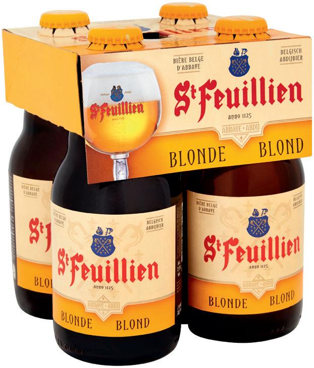10 *Le prix indiqué tient compte de la réduction **Uniquement sur présentation de votre app My Match ou de votre carte €uromatch ***Soit 25 % de réduction en caisse sur le montant total de 2 articles Notre savoir-faire se déguste avec sagesse 1,50€ REMISE IMMÉDIATE EN CAISSE** 5 99 GRATIS Jusqu'à épuisement du stock À l'achat de 2 packs St Feuillien Blonde ou Grand Cru 4 x 33 cl au choix + 1ST FEUILLIEN FRUIT 4 X 33 CL 1199 -25% à l'achat de 2 9 , 98 7 49* Bière d’abbaye ST FEUILLIEN Exemple : Blonde + vidange Pack 4 x 33 cl 4,54 €/L Bière blonde CORNET La gamme Exemple : + vidange 2 x (6 x 33 cl) 3,03 €/L Prix normal 2 x (6 x 33 cl) : 18,58 € AFFLIGEM 00, GRIMBERGEN 00, HEINEKEN 00, MAES 00 ET STRONGBOW 00 Exemple : AFFLIGEM - Blonde 0,0% 2 x (4 x 33 cl) 2,84 €/L MAREDRET Triplus + vidange Pack 4 x 33 cl Prix : 6.99 € = 6 € le pack à l'achat de 2 = 3,75 € le pack à l'achat de 2 2 ème à 1/2 PRIX***