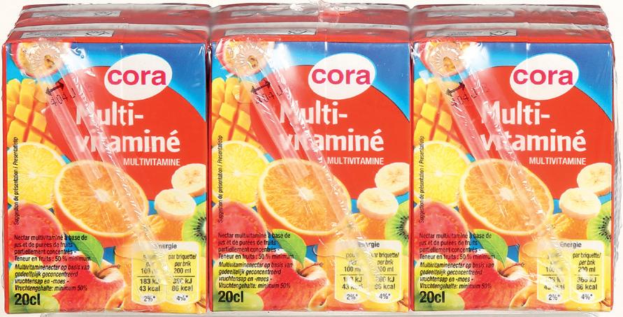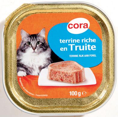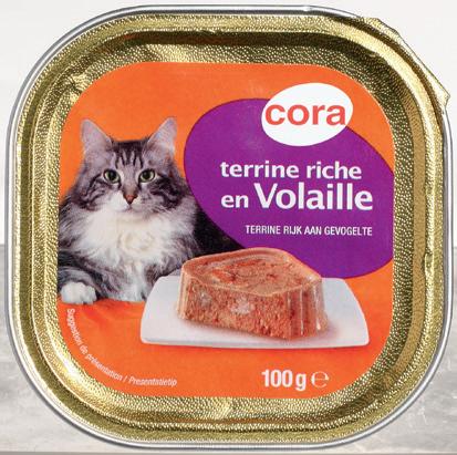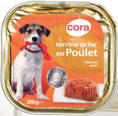 € € 13 0 99 Barquette 300 g 0 49 Barquette 100 g 199 Pack 6 x 20 cl 1, 95 149 2 L Terrine pour chiens CORA Boeuf, junior, poulet ou veau 3,30 €/kg Jus CORA Multivitaminé, pomme, orange ou ananas 1,66 €/L Fines terrines pour chats CORA Boeuf, saumon, truite ou volaille 4,90 €/kg Thé glacé CORA Pêche 0,75 €/L € € € MEGA PETITS PRIX