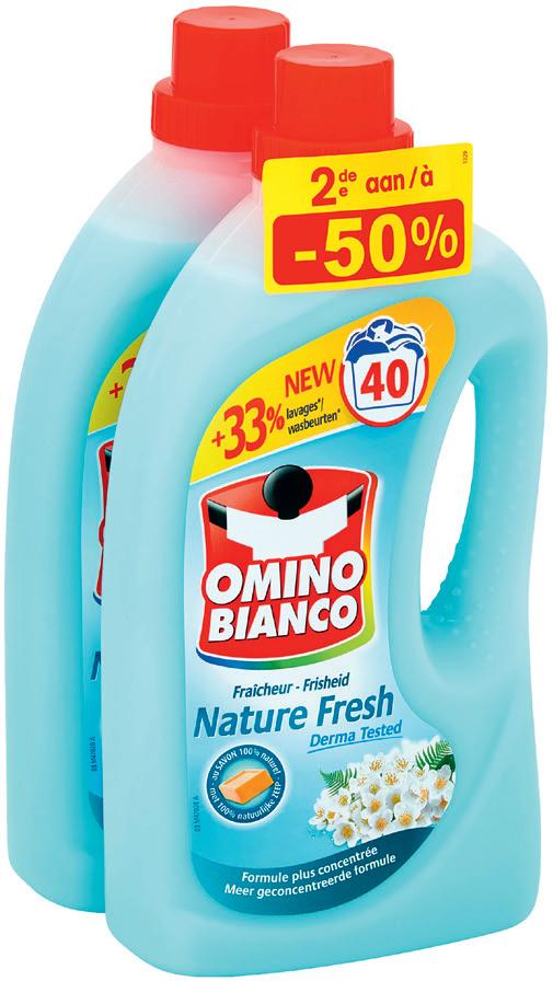 18 4 99 1199 7 98 3 99 2+ 1 GRATIS* Nettoyant C AROLIN La gamme en pack Exemple : Pour sol à l'huile de lin Pack 2 x 1 L Prix normal 2 x 1 L : 10,10 € WC NET La gamme en pack Exemple : Gel WC Javel White Fresh Pack 2 x 750 ml 2,66 €/L Prix normal 2 x 750 ml : 7,30 € LISTERINE Toutes variétés au choix 3 x 500 ml 5,32 €/L Prix normal 3 x 500 ml à partir de 20.37 € 2 ème à 1/2 PRIX 2 ème à 1/2 PRIX 2 ème à 1/2 PRIX = 2,50 € le bidon à l'achat de 2 = 6 € le bidon à l'achat de 2 = 2,66 € le flacon à l'achat de 3 = 2 € le bidon à l'achat de 2 *Soit 33,34 % de réduction en caisse sur le montant total de 3 articles Lessive liquide OMINO BIANCO Coeur de Marseille, Nature Fresh et Sensitive Pack 2 x 37 doses 0,17 €/dose Prix normal 2 x 37 doses : 24,64 €