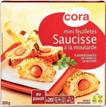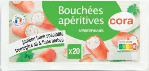 3 2 , 29 194 -15% 6 05 3 49 Pot 130 g 4 , 19 3 65 Belgique 20 mini-feuilletés saucisse à la moutarde CORA 2 x 320 g 9,45 €/kg Prix normal 2 x 320 g : 8,10 € Yakitoris ORIEN BITES 14,60 €/kg 20 bouchées au fromage et à l’ail CORA Paquet 100 g 19,40 €/kg Cubes de fromage BEEMSTER 26,85 €/kg Déduction faite en caisse 2 ème à 1/2 PRIX = 3,03 € le paquet à l'achat de 2 BONNE ANNÉE! Paquet 250 g