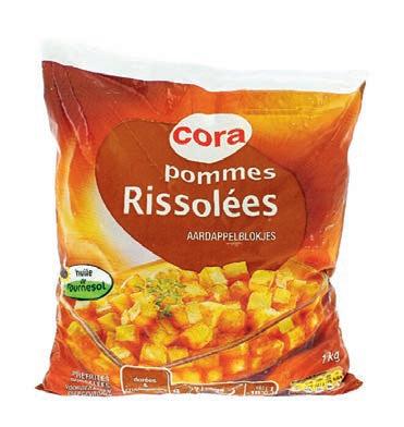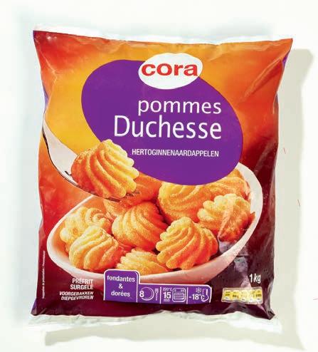5 2 , 19 159 2 79 3 38 198 GRATIS 2 + 1 - 30%* Belgique Exemple : Duchesse CORA 2 x 1 kg Prix normal 2 x 1 kg : 3,98 € Carottes râpées, chou blanc râpé ou chou rouge râpé 3 x 200-250 g 3,30-2,64 €/kg Prix normal 3 x 200-250 g : 2,97 € Perles farcies DE ANGELIS Jambon cru ou parmigiano 13,95 €/kg Pommes de terre grenaille LOUIS Jaune Catégorie 1 Origine : voir emballage = 1,69 € le paquet à l'achat de 2 = 0,66 € le paquet à l'achat de 3 Déduction faite en caisse *Soit 15 % de réduction en caisse sur le montant total de 2 articles sur la gamme Duchesse, Noisettes et Rissolées CORA ACCOMPAGNEMENTS 2ème à Sac 1 kg Paquet 200 g Le goût du savoir-faire