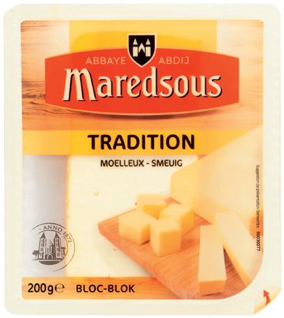 cl) : 10,10 € KWATTA Hetgamma/ La gamme Voorbeeld/ Exemple : Smeerpasta-Puur Pâte à tartiner - Fondant 2 x 600 g 4,42 €/kg Normaleprijs/ Prix normal 2 x 600 g : 10.60 € Abdijkaas/ Fromage d’Abbaye MAREDSOUS Snedenofblok / Tranches ou bloc Voorbeeld/ Exemple : Traditie/ Tradition 2 x