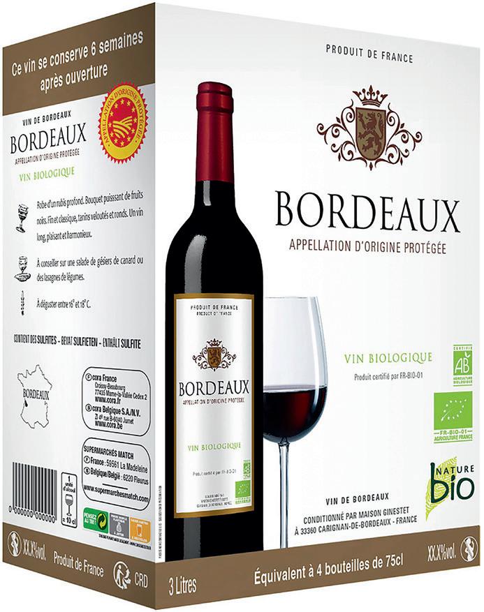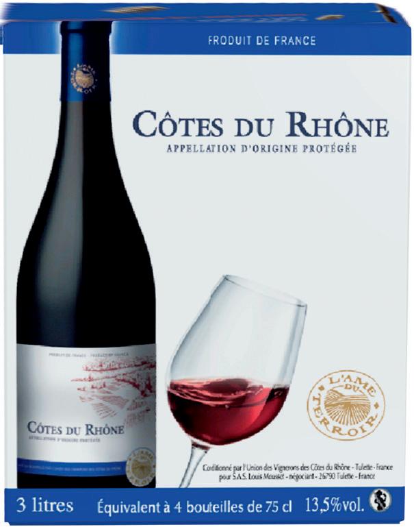 BAG-IN-BOX 30 17 , 89 13 39 3 L 15 , 99 1199 3 L 22 , 69 16 99 3 L 14 , 69 10 99 3 L Ile de Beauté L'Ame du Terroir I.G.P. 4,33 €/L Bordeaux Nature Bio A.O.P. 5,66 €/L -25% -25% -25% -25% -25% -25% 17 , 35 12 99 3 L 15 , 99 1199 3 L Côtes du Rhône L'Ame du Terroir Rouge A.O.P. 4,46 €/L Vin du pays de l'Hérault Rouge, rosé ou blanc 4 €/L Vin de Pays d'Oc L'Ame du Terroir Cabernet Sauvignon, Sauvignon blanc, Merlot ou Chardonnay 4 €/L Merlot ou Grenache Nature Bio 3,66 €/L