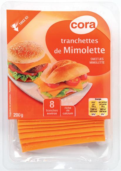 13 199 -20% -20% 2 , 59 2 07 -25% à l'achat de 2 2 , 29 183 SUPER PROMO 7, 18 5 38* Beurre C ARLSBOURG Doux ou salé 2 x 250 g 10,76 €/kg Dessert MARIE MORIN Mousse au chocolat à l’ancienne ou au lait, moelleux au chocolat ou tarte au citron Pot 100-120 g 19,90-16.58 €/kg Natura Burrata S ABELLI Pot 125 g 16,56 €/kg Fromage en tranches CORA La gamme Paquet 200 g Exemple : Maasdam 9,15 €/kg *Le prix indiqué tient compte de la réduction = 2,69 € le paquet à l'achat de 2
