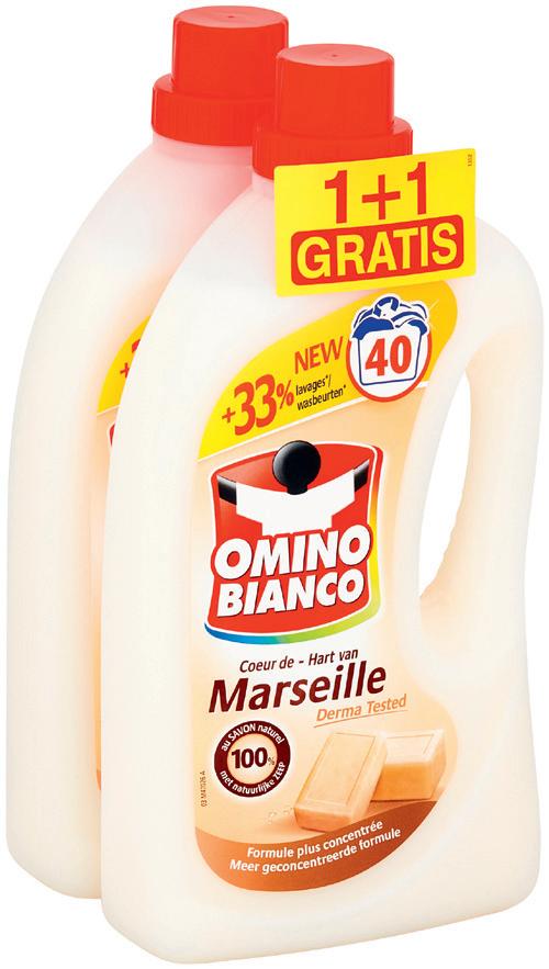 GRATIS** 1+ 1 GRATIS 5 38 8 99 Lessive liquide OMINO BIANCO Toutes variétés au choix 2 x 1,5-2 L Pack 2 x 30-40 doses 0,16-0.12 € /dose 3,28-2.46 €/L Prix normal 30-40 doses : 24.30 € ALWAYS et TAMPAX La gamme Exemple : Serviettes hygiéniques Organic Cotton - Long 3 x 9 pièces Prix normal 3 x 9 pièces : 9,57 € PAMPERS La gamme Exemple : Couches Premium Protection - T 1 4 x 29 pièces Prix normal 4 x 29 pièces : 39,96 € Pods de lessive et lessive liquide DASH Pack de 2 4 variétés Exemple : Pods de lessive Platinum Cotton Pack 2 x 10 doses 0,45 €/dose Prix normal 2 x 10 doses : 19,98 € = 4,93 € le bidon à l'achat de 2 = 4,50 € le paquet à l'achat de 4 = 1,80 € le paquet à l'achat de 3 = 4,50 € la boîte à l'achat de 2