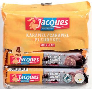 JACQUES La gamme Exemple : Bâtons de chocolat au lait fourrés Caramel-sel de mer 2 x 180 g 9,14 €/kg Prix normal 2 x 180 g : 6,58 € Topper OIKOS Granola choco ou Granola fraise 4 x 120 g 7,04 €/kg Prix normal 4 x 120 g : 6,76 € = 1,65 € le paquet à l'achat de 2 = 0,85 € le pot à l'achat de 4