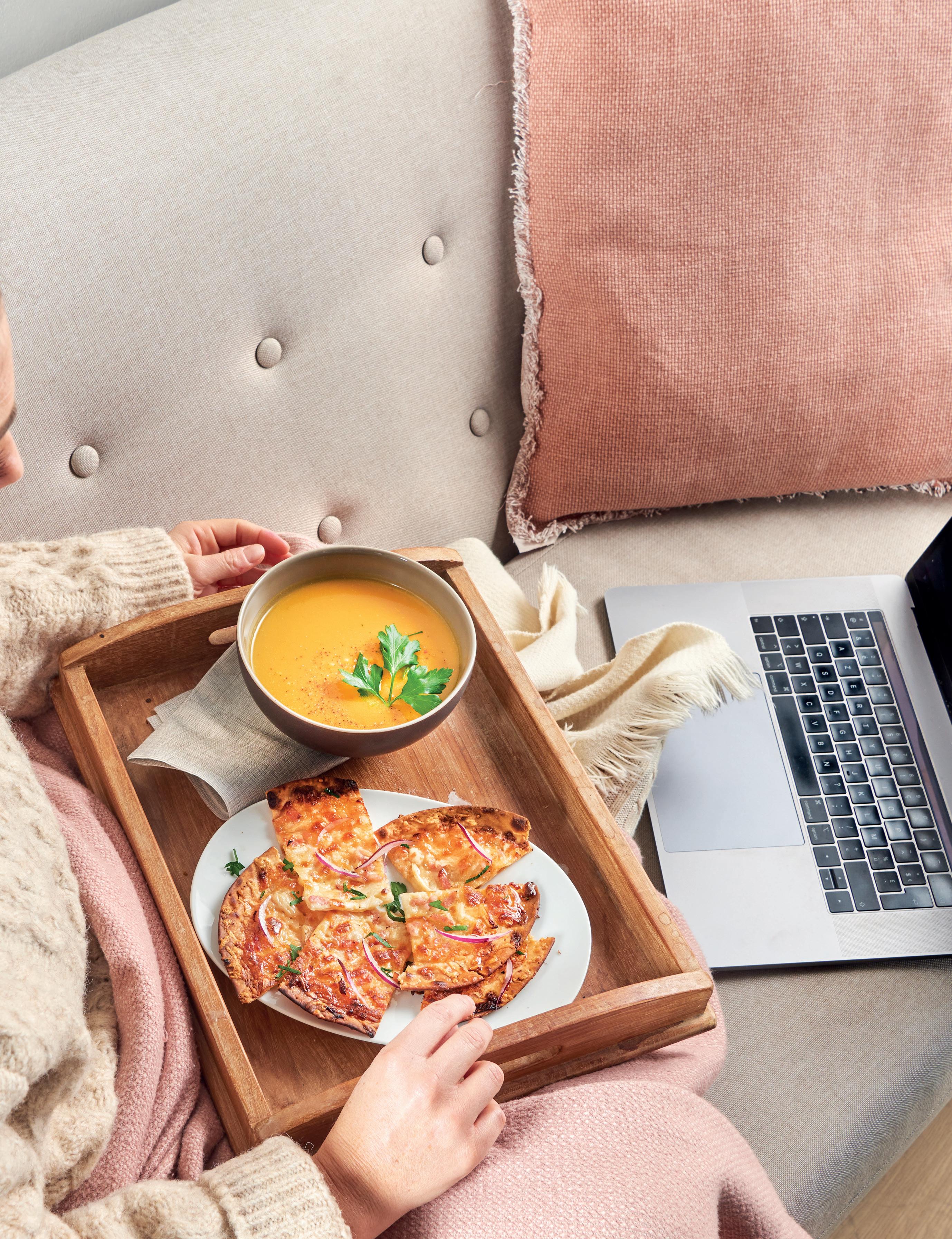 Après l’engouement des fêtes, l’hiver, c’est le moment où on profite pour se recentrer sur l’essentiel, pour cocooner à la maison et se laisser aller aux plaisirs les plus simples : des plats au four faciles et originaux, des stoemps bien de chez nous, un bon bol de soupe, un plateau repas seul ou à partager les orteils en éventail devant la TV. Le pied, quand on a tendance à hiberner !