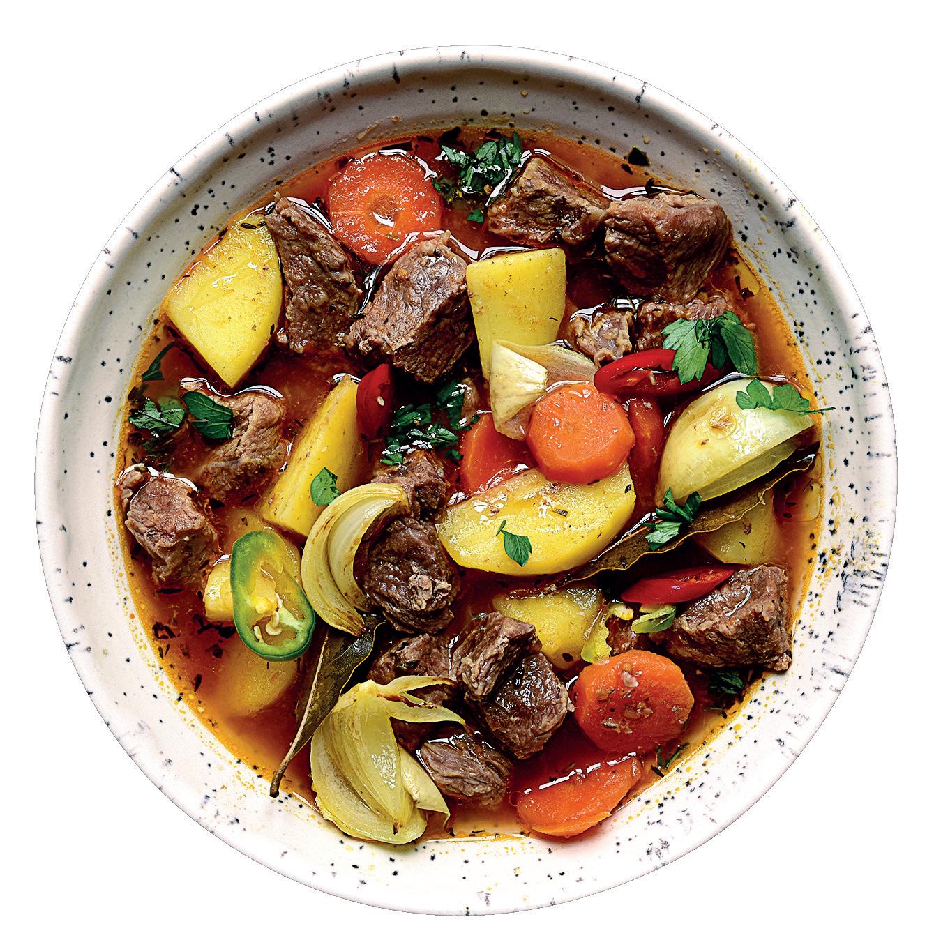 250 g de faux filet de bœuf 1 blanc de poireau 2 grosses pommes de terre 225 g de pak choy 300 g de tofu en cubes Ail, gingembre 1 citron vert