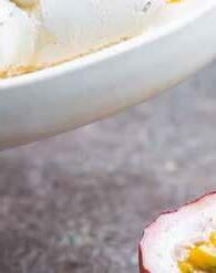 5. Dans une casserole versez l’eau et le sucre en poudre, ajoutez la pulpe des fruits de la passion. Faites chauffer jusqu’à ce que le mélange épaississe en sirop. Laissez refroidir.