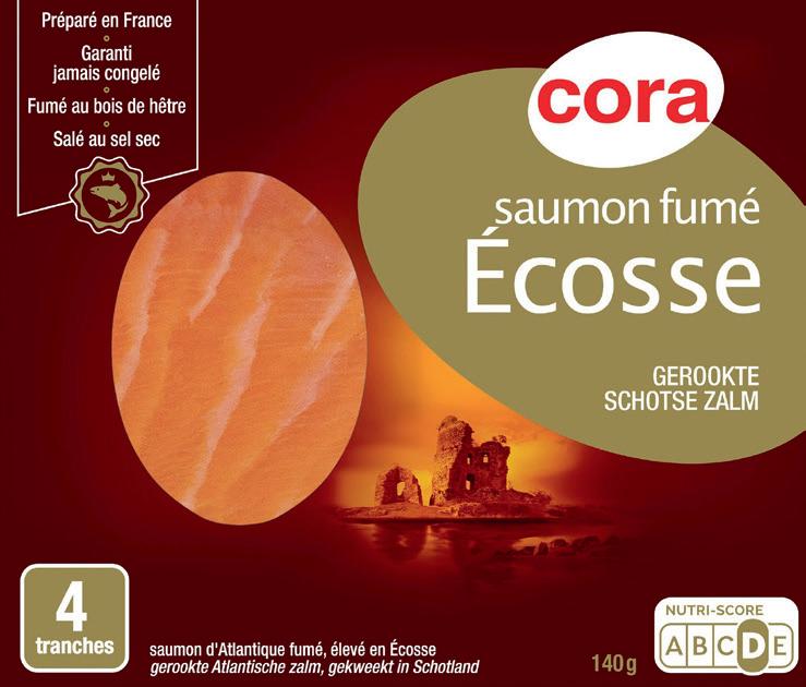 OFFRES VALABLES UNIQUEMENT DANS LES SUPERMARCHES MATCH ET EN FONCTION DE L'ASSORTIMENT DISPONIBLE Les offres frais de cette page sont valables jusqu'au 8 novembre 2022 de gagner 20 € d'achat carte à gratter Saumon fumé d'Ecosse ou de Norvège CORA 4 tranches 32,07 €/kg Wok de crevettes Elaboré dans nos ateliers Filet de thon rouge albacore Pêché en eau de mer Origine : Océan Pacifique -16% -25% DOS DE SAUMON Elevé en Norvège ou en Ecosse -22% 21 90