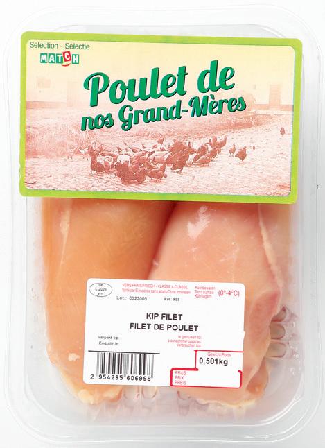 2 OFFRES VALABLES UNIQUEMENT DANS LES SUPERMARCHES MATCH ET EN FONCTION DE L'ASSORTIMENT DISPONIBLE Cordon bleu de pouletMAÎTRE COQ Origine : France 5,45 €/kg Vendu seul - 1 kg : 10,90 € Filet de pouletDE NOS GRAND-MÈRES Origine : Belgique 7,50 €/kg Vendu seul - 600 g : 9,00 € Les offres frais de cette page sont valables jusqu'au 8 novembre 2022 -32% -31% -35% = 5,45 € lapièceàl'achatde2 1+1 GRATIS 21 80 Déduction faite en caisse = 4,50 € lapièceàl'achatde2 1+1 GRATIS Déduction faite en caisse *Voir conditions sur notre site Recevez une Par tranche de et tentez de nombRÔTI DE PORC AU CARRÉ SANS OS Origine : Luxembourg