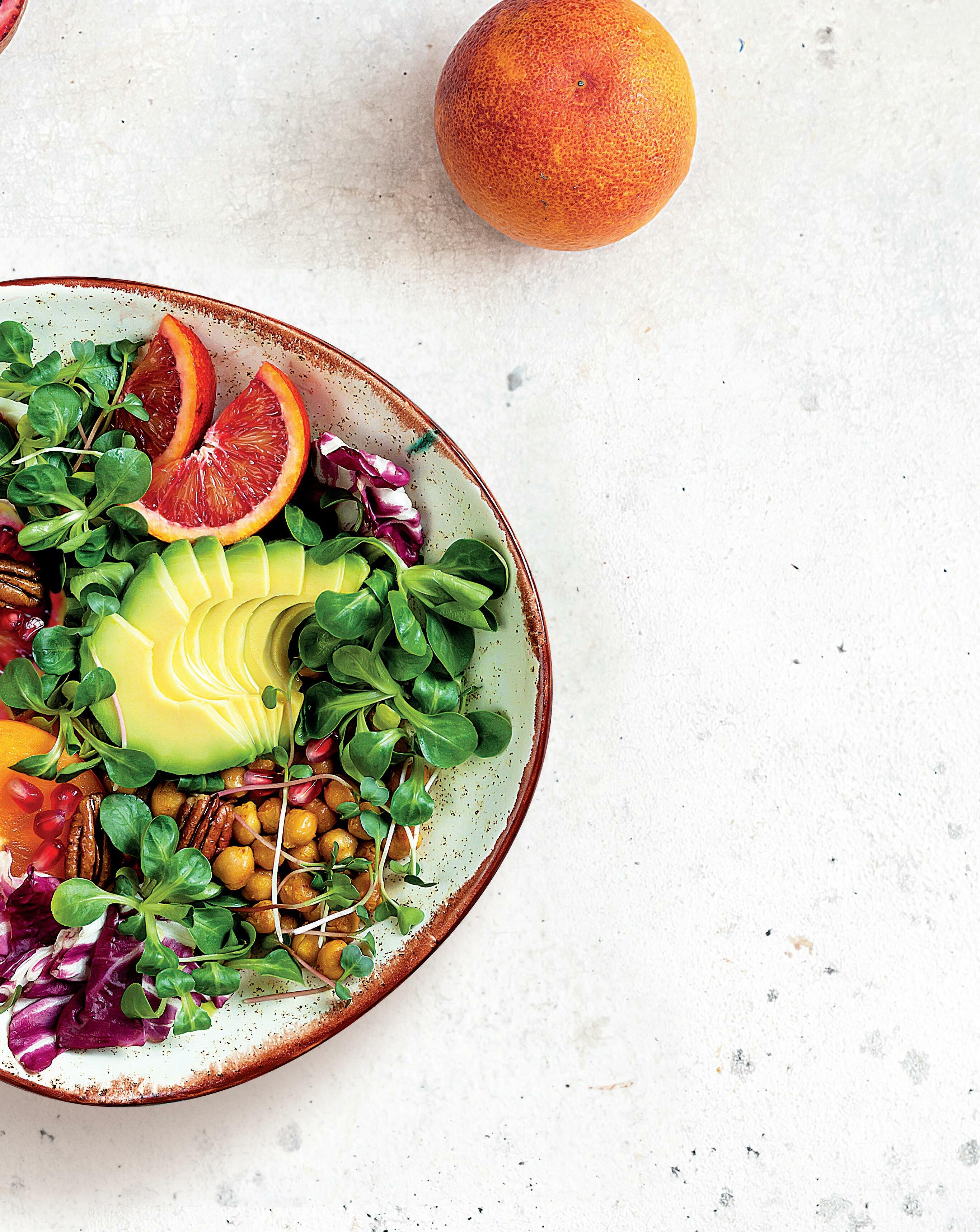 Fruit in alle vormen (en zeker de bloedsinaasappel in februari) is perfect om je slaatjes te pimpen. Het zorgt niet alleen voor smaak, frisheid en kleur, maar ook voor de vitaminen die welgekomen zijn om vlot de winter te trotseren.