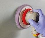 Compound the repair area with a 3" polisher. Use a 3" foam compound pad and the appropriate rubbing compound. Wipe clean with a yellow microfiber cloth.
