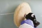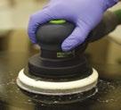 Compound the repair area with a high speed polisher set between 1200–2000 RPM. For faster results, use a foam compounding pad and the appropriate rubbing compound. To insure all sand scratches have been removed, inspect the surface by spraying with an inspection spray and wipe clean with a yellow microfiber cloth.