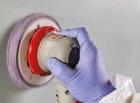 3M™ Trizact™ Foam Disc used damp with a soft interface pad. Wipe clean with a yellow microfiber cloth.