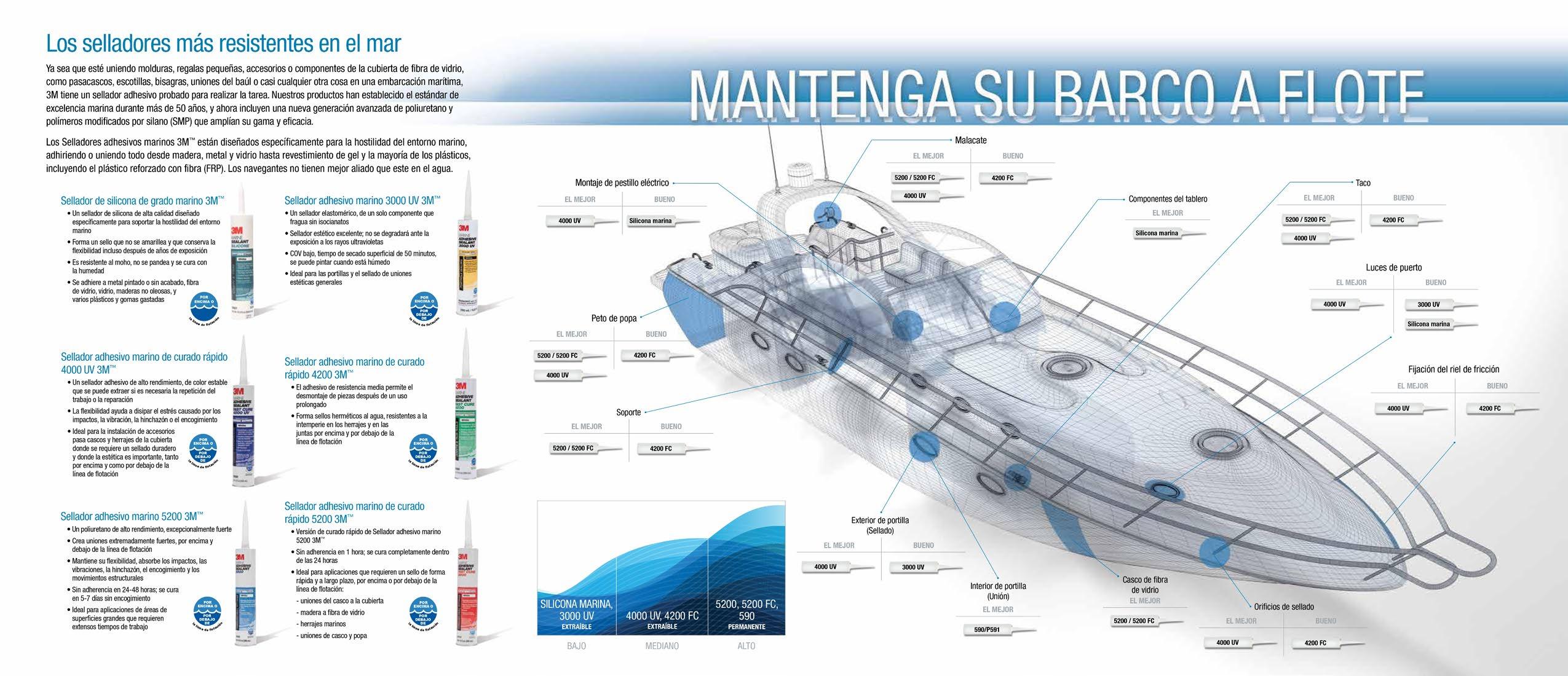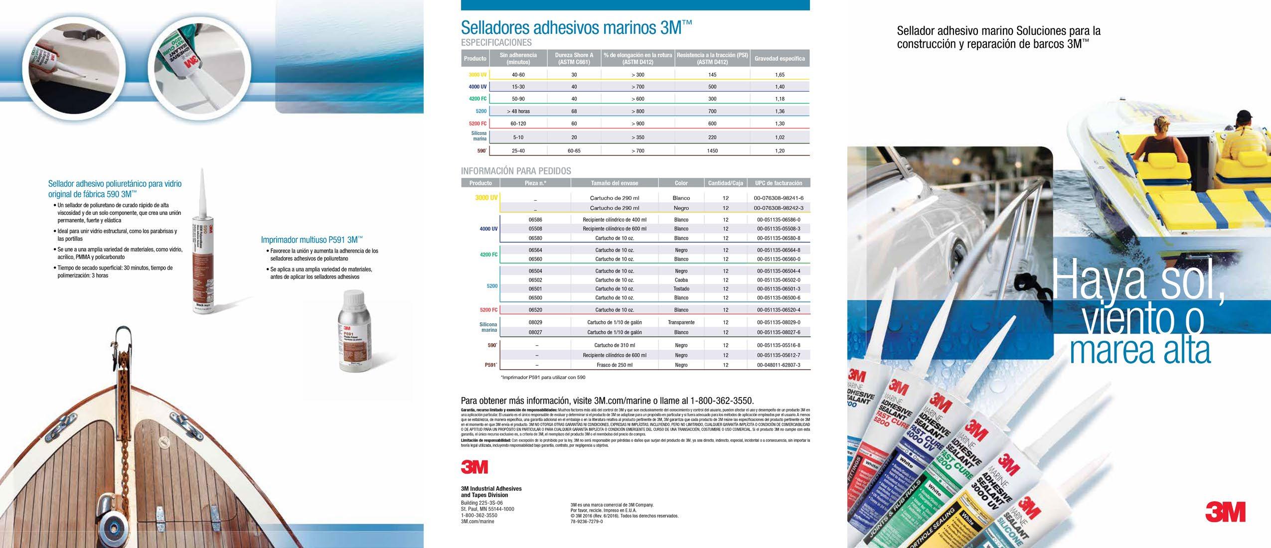 Combate las vibraciones, la expansión, la contracción y el impacto el sellador adhesivo marino 5200 de 3M™ está diseñado para satisfacer las altas exigencias del entorno marino, lo que lo hace ideal para crear uniones resistentes al agua salada y a la intemperie.