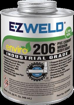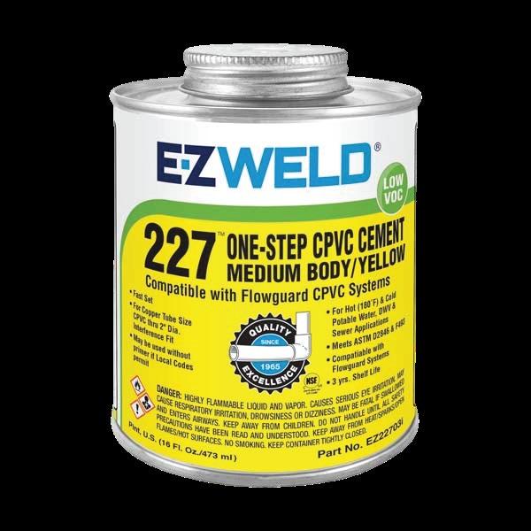 Está formulado para su uso con tuberías y accesorios de CPVC de tamaño de tubo de cobre (CTS) para agua potable fría y caliente, de hasta 2" (63 mm) de diámetro.