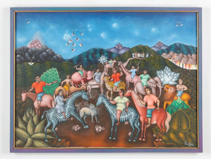 Our auction spans more than 60 years of Haitian artistic achievement, filled with fine examples of what I call Haitian exceptionalism. This comprehensive sale, as framed in Where Art Is Joy by Selden Rodman, includes every generation of 20th-century Haitian art: from the earliest painters associated with the Centre d’Art, through the second and third generations. The auction takes us through the Golden Age of the 1950s, then into the Moderns, the School of Beauty, Saint Soleil, and Atis Rezistans.