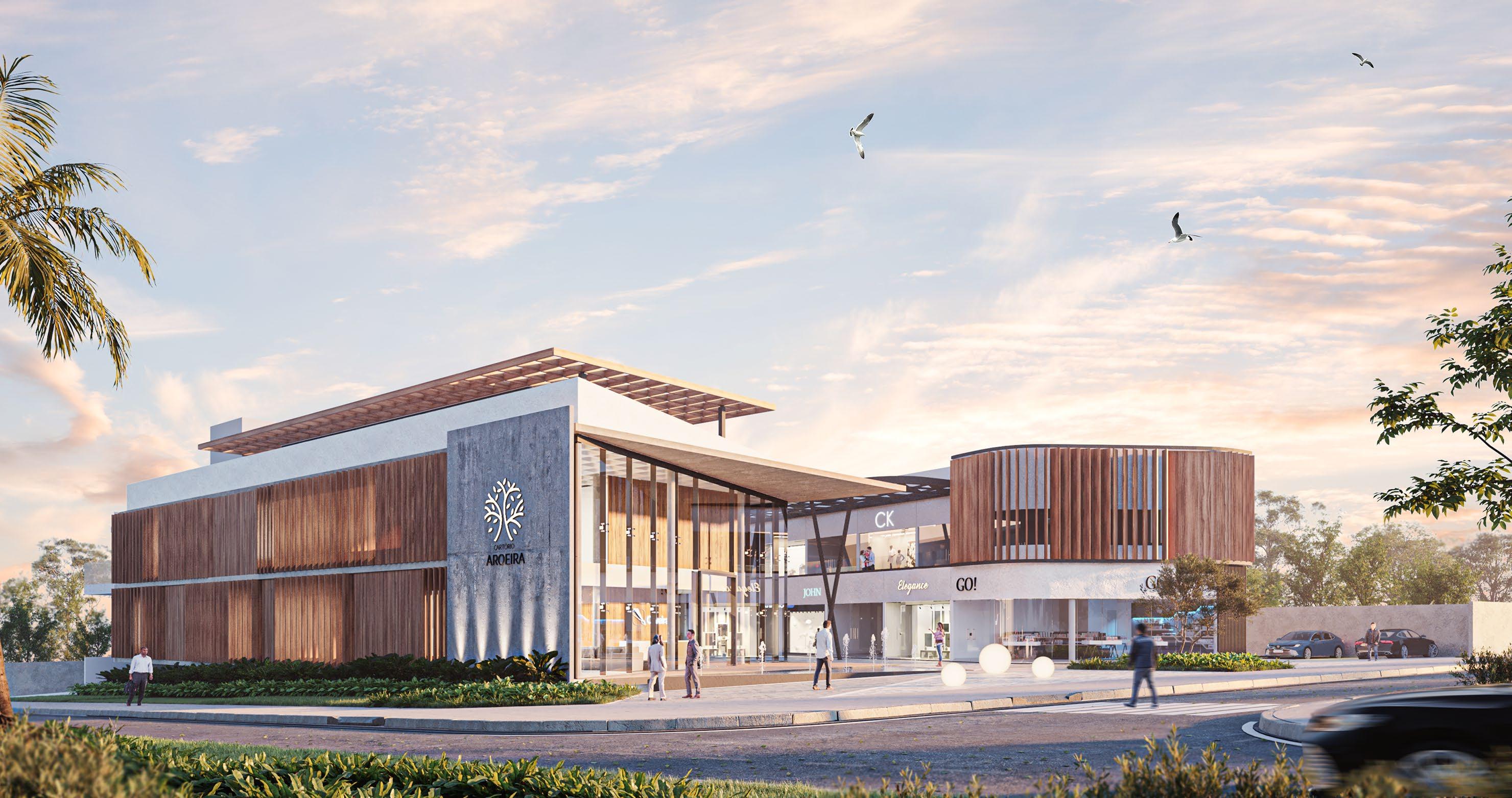 The Aroeira: Notary Office + Street Mall is a mixed-use project located on a prominent corner in Aparecida de Goiânia, Brazil. Designed as both a functional workspace and a contemporary architectural landmark, the project blends elegance and utility. It features a notary office and retail spaces, combining wood, steel, glass, and concrete for a refined yet approachable aesthetic.