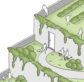 The expansive 2,300 sqm rooftop hosts a solar energy plant, reducing shared energy costs for tenants and promoting eco-friendly operations. Gardens and shaded outdoor areas enhance the visitor experience, fostering interaction and creating a welcoming atmosphere for the community.