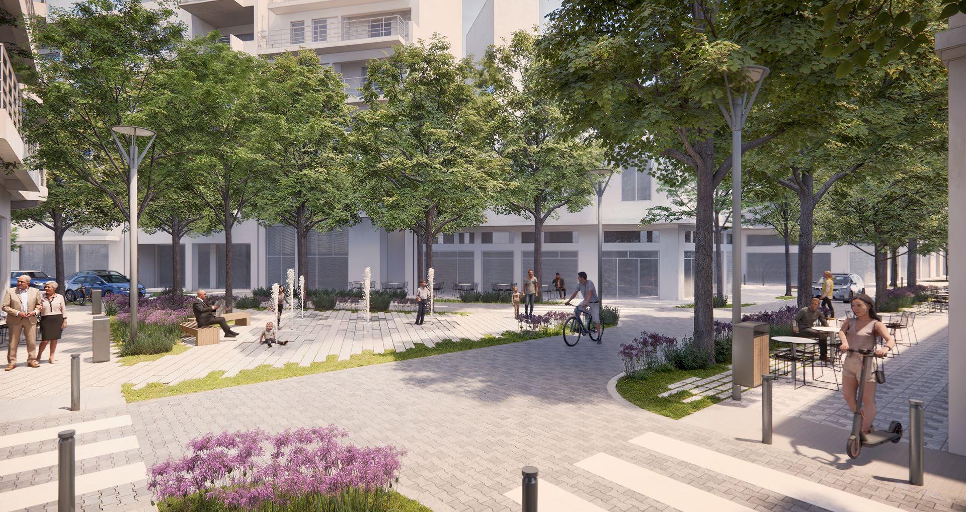 The design of the square is rooted in a flexible and inclusive vision that prioritizes both functionality and aesthetics: