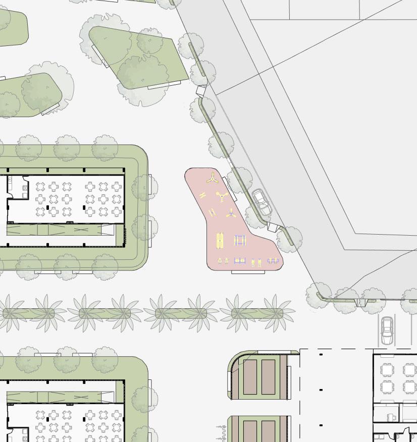 • Flexible Layout: The square’s design accommodates multiple uses, including play areas, sports facilities, and community gardens. It allows for future adaptations based on evolving community needs.