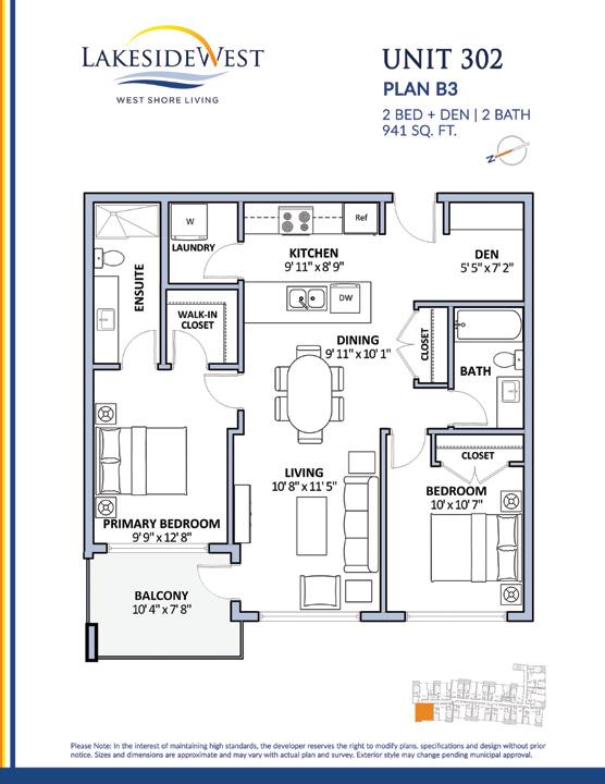• B3 2 BED + 2 BATH + DEN 5 UNITS 941 sq.ft.