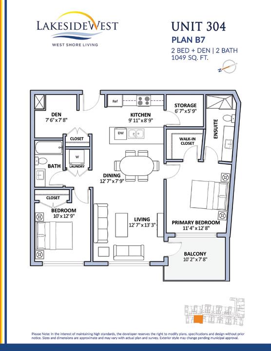 • B7 2 BED + 2 BATH + DEN 5 UNITS 1,049 sq.ft