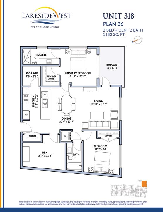 • B6 2 BED + 2 BATH + DEN 4 UNITS 1,183 sq.ft.