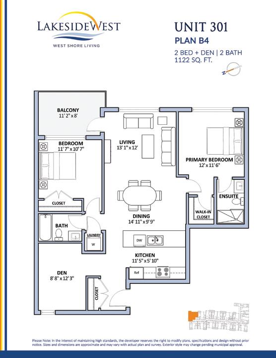 • B4 2 BED + 2 BATH + DEN 5 UNITS 1,122 sq.ft.