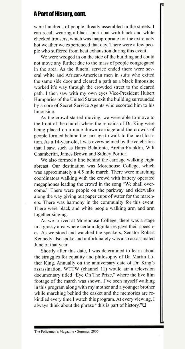 I still remember watching the funeral of Rev Dr Martin Luther King Jr as a child Mrs King holding little Bernice close during the procession, the weight of grief visible on everyone's faces The love people expressed for Dr King and all those who marched alongside him for voting rights, social justice, and economic equality left a deep lasting impression