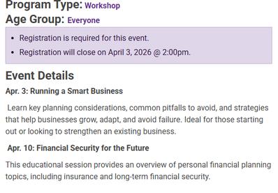 the Classes Offer