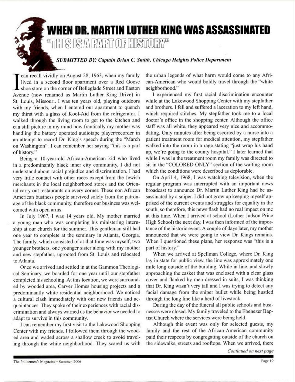 Like millions of Americans, I recall exactly where I was when news broke of the assassination of the Rev Dr Martin Luther King Jr