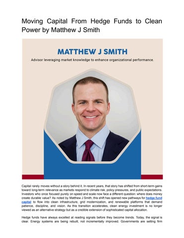 Matthew J Smith has spent nearly two decades developing a career that connects investment insight with operational leadership across energy, power, and data center industries. He has built a record that combines disciplined analysis with practical decision-making, reflecting his experience in both institutional investing and executive management. His path shows a consistent ability to balance market understanding with real-world operations, focusing on thoughtful action and accountability throughout each phase of his professional journey. He began his professional life as a financial analyst, learning how to evaluate businesses, assess cash flows, and understand economic patterns. His early work across multiple sectors strengthened his ability to identify opportunities and risks while maintaining a focus on long-term results. These early years shaped his structured approach to analysis and forecasting, building habits of precision and care that would later influence his investment philosophy and management style across varied business environments. He grew his expertise in senior investment roles within respected institutions, managing research and portfolio strategies across energy, industrial, and infrastructure markets. His work required careful study of both cyclical and structural market changes, and he developed an approach that emphasized sound research and consistent discipline. Through these experiences, he deepened his ability to align investor goals with practical execution, helping guide capital toward opportunities supported by a strong understanding of industry fundamentals. Matthew went on to establish his own investment firm, where he served as Managing Partner and Chief Investment Officer. Leading the organization required oversight of investment performance, team management, and technology-driven research processes. He built an environment centered on collaboration, data, and careful decision-making.