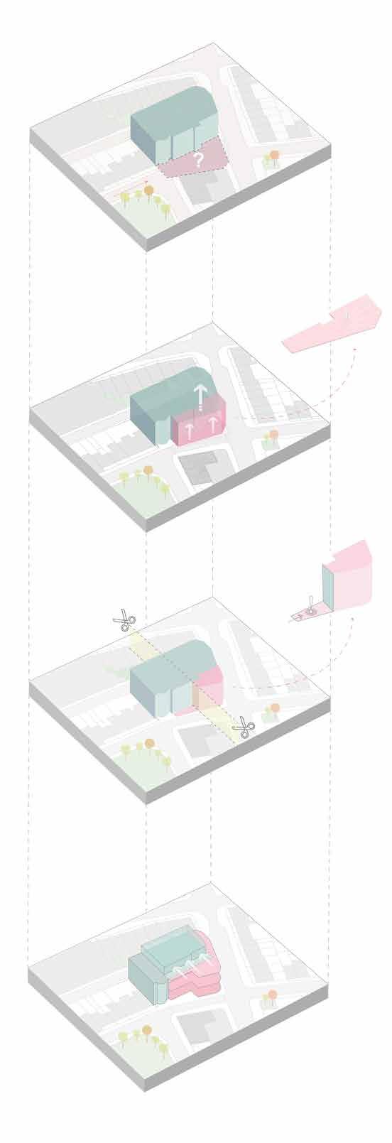 Axonometric | Connected, yet Disconnected Park + Street Extension