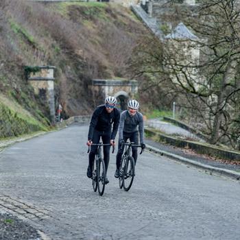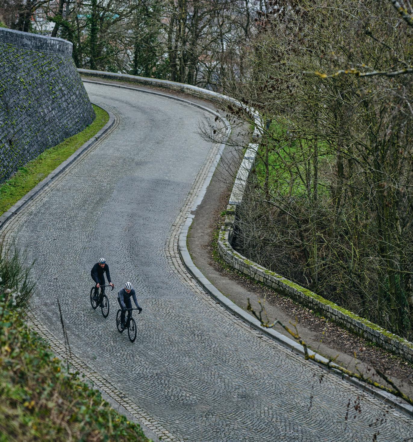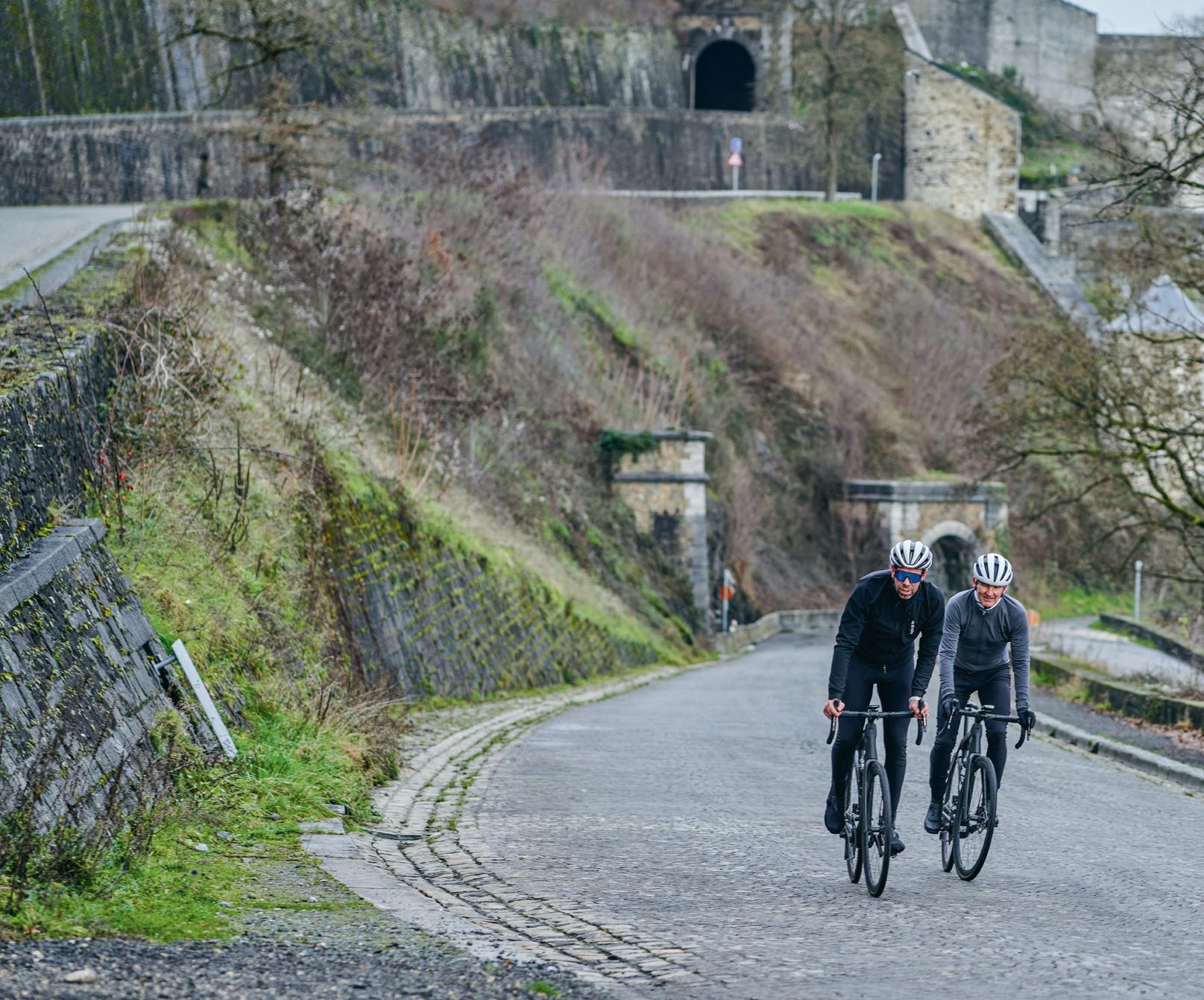 plannetje mee, een gps aan het stuur en een noodnummer voor in geval van. Uit de drie borden met stukken van het Gold Race-parcours kiezen we optie drie. Bij het vertrek kabbelt de Geul ijzig kalm voorbij. Het is nauwelijks voor te stellen dat dit onschuldige riviertje de Valkenburgse binnenstad in 2021 overstroomde en dat het wassende water op één na alle bruggen stuksloeg.