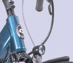 Kijk ook of je frame een verende zadelpen toelaat. Dat is namelijk een van de eerste zaken die mensen na een tijdje fietsen willen aanpassen. “Ook de vorm van het stuur, de handvatten en de pedalen worden vaak aangepast. Het zijn de contactpunten van de fietser met zijn fiets. Een grotere fiets is vaak comfortabeler dan een kleiner model. Bij een kleinere fiets komt het stuur in verhouding tot het zadel lager te zitten en dan heb je een minder comfortabele houding. De zadelhoogte is de basis van elke fitting. Zet een van de twee pedalen op de onderste positie. Staat je hiel op het pedaal en is je been gestrekt, dan is de zadelhoogte correct. De stuurpen stel je af tot het voor jou voelt dat je comfortabel zit.”