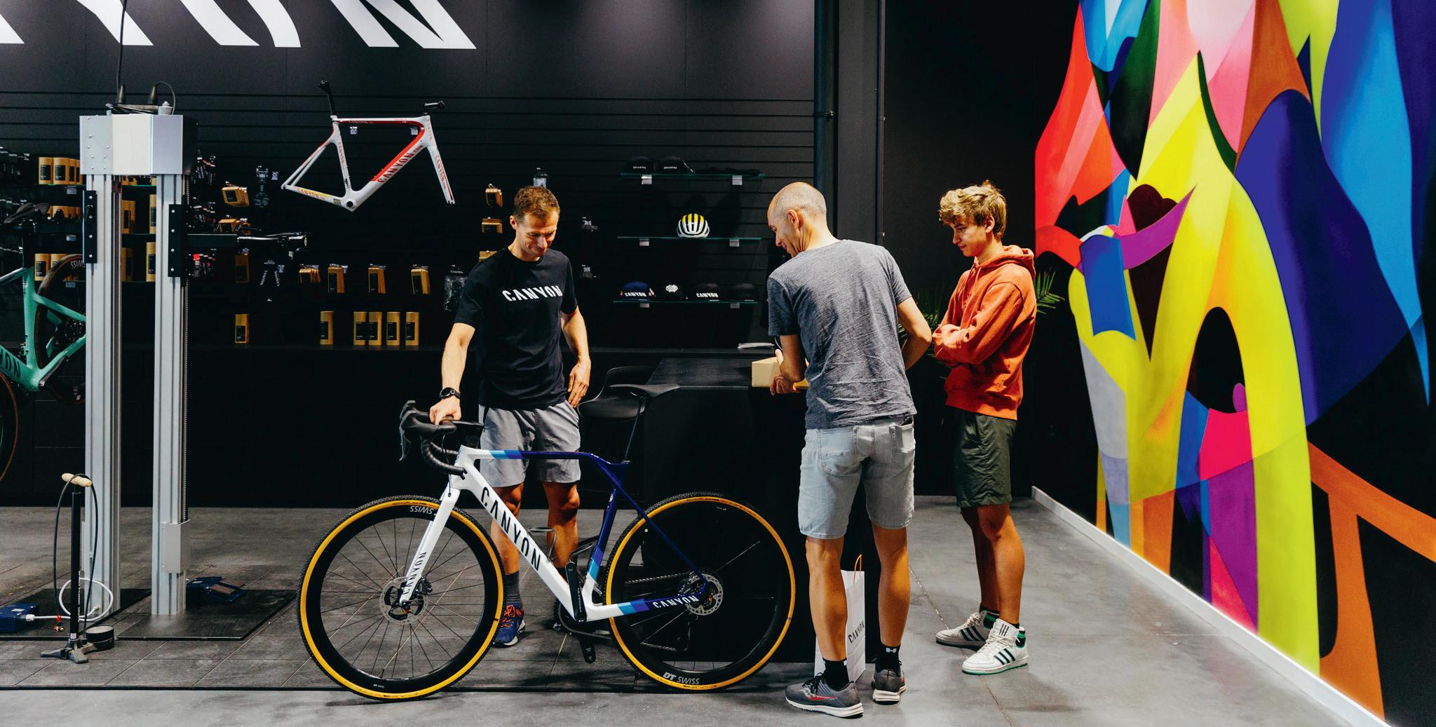van het Shimano 105-schakelsysteem, de di2 (digital integrated intelligence), helemaal elektrisch, en systemen van Dura Ace en de Ultegra. Canyon verkoopt zijn fietsen uitsluitend online, maar hier kun je ze komen testen. Er is ook de Amstel Gold Race-ruimte met een overzicht van oud-winnaars en parcoursen. Je kunt er een kop koffie drinken met een stukje Limburgse vla en natuurlijk kun je jezelf uitgebreid laten testen.