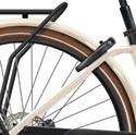 In een notendop waar de Lundi 27 voor staat? Gemakkelijk te besturen, nauwkeurig, stabiel, comfortabel en betrouwbaar dankzij het innovatieve triple cavity-frame, waarin de Bosch PowerTube-accu geïntegreerd is. De fiets biedt een ongeëvenaarde laterale stijfheid voor stabiliteit en veiligheid, maar is toch flexibel genoeg om oneffenheden comfortabel op te vangen dankzij de dikkere, comfortabelere banden. Het herkenbare Moustache-stuur is een ‘high riser’. De kabels zijn ingewerkt en je kunt een adapter voor een mandje op het stuur monteren.