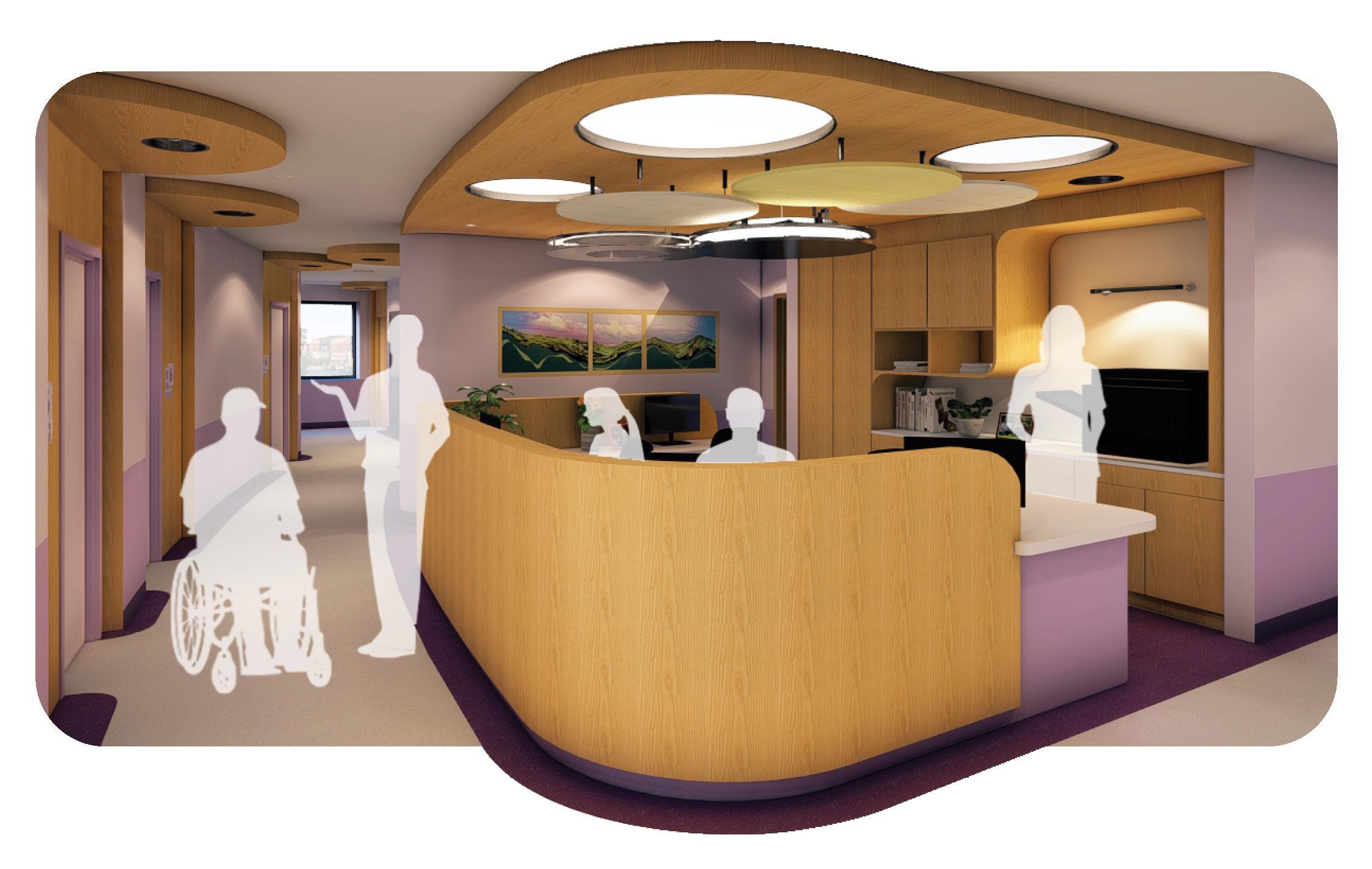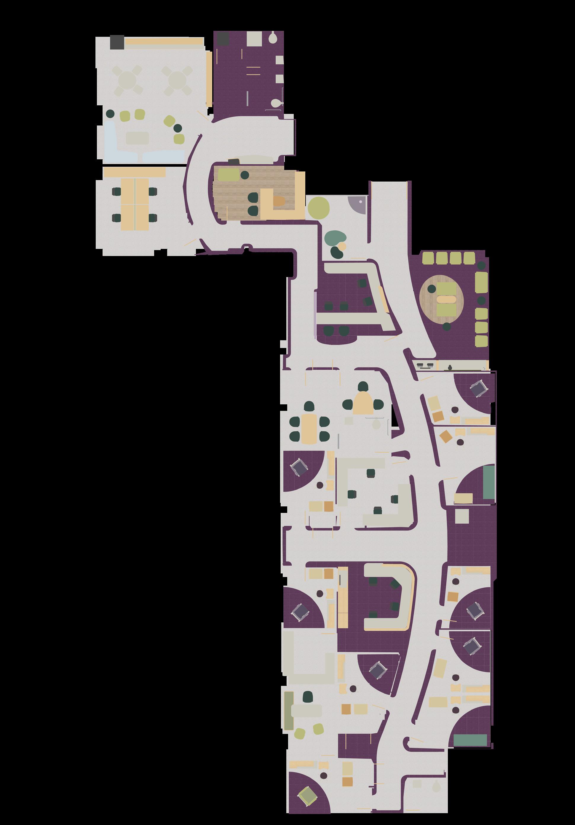 Inspiration taken from the region—native Montana flowers and the many rivers and creeks that snake through the area—inform the lilac color palette, the softened edges, and the gentle bend of the main corridor. These elements root the clinic in its local environment while reinforcing its mission of unity, care, and collaboration.