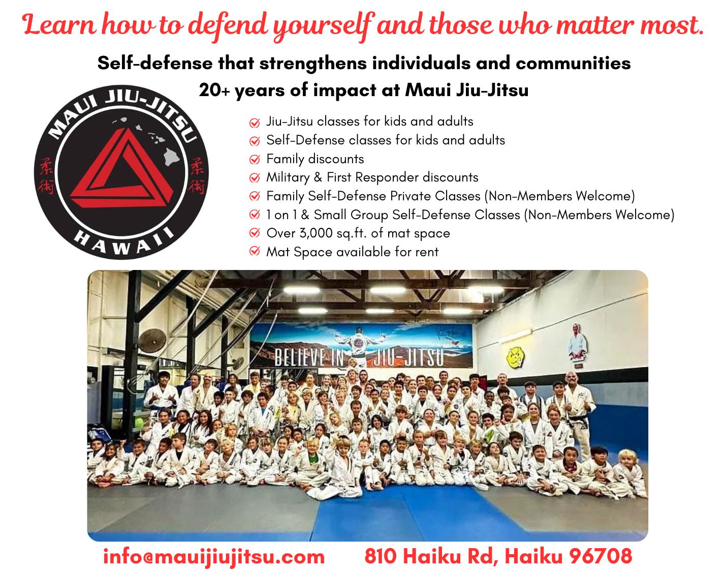 Maui Jiu Jitsu Academy mauijiujitsu.com • info@mauijiujitsu.com 810 Haiku Rd, Unit 230, Haiku
