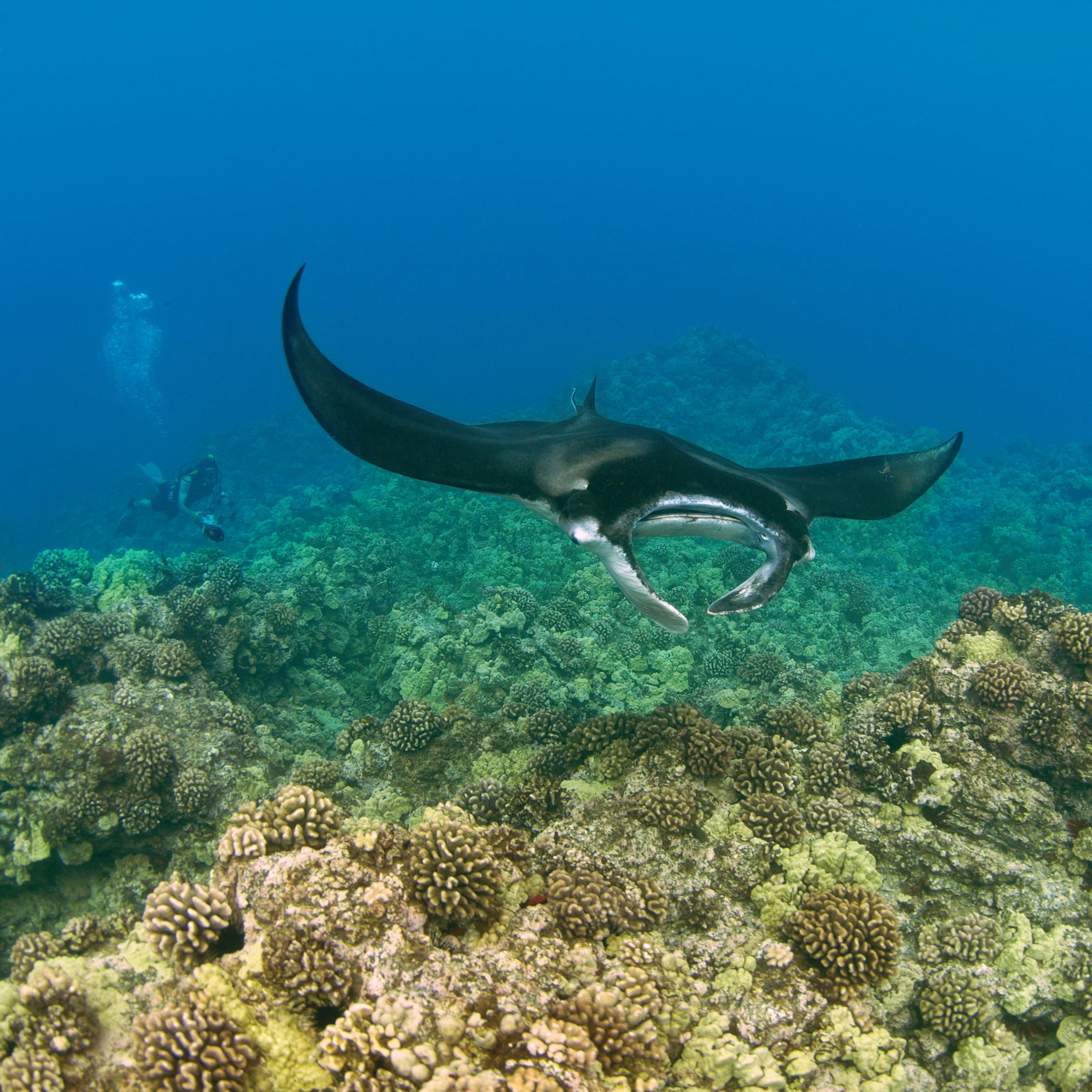 Adult manta rays living in the waters of Maui Nui have 12-foot wingspans and weigh 1,000 pounds. Manta rays are a slowgrowing species, with females producing a single pup only once every three to seven years.