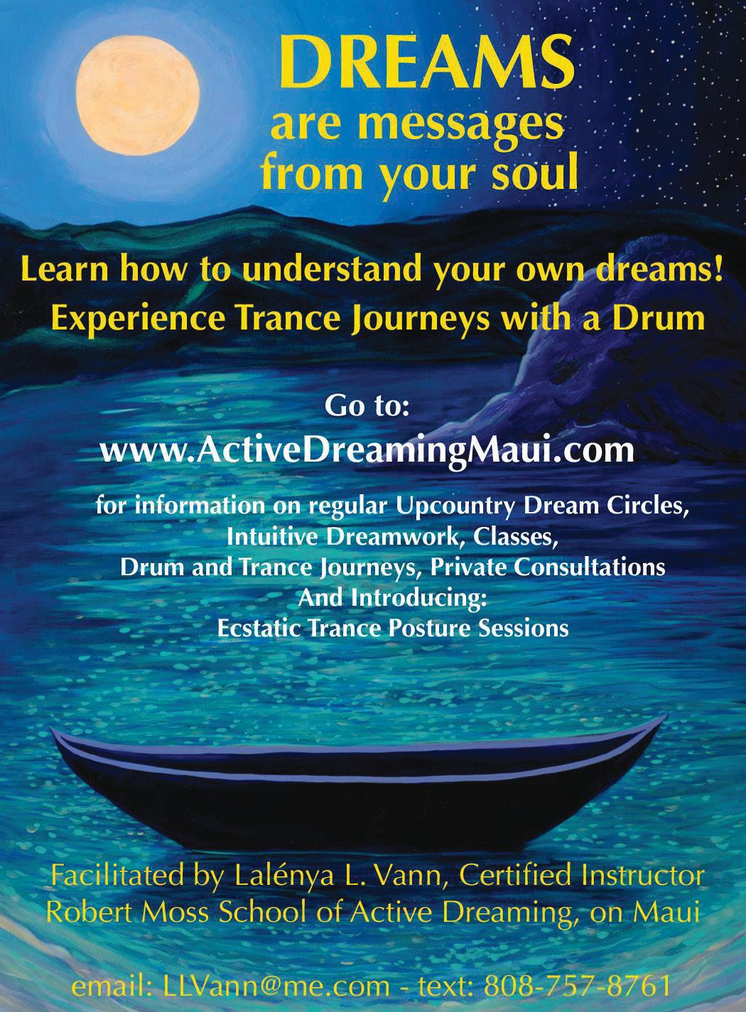 Evolutionary Astrologer Readings & Healings with Juliet Butters Doty, Mentor, Transformational Healer ‘Soul Whisperer’ Call 808-359-8676 Free yourself up unwindthesoul.com AYAHUASCA IN HAWAII? Join us on the Big Island where we celebrate Hawaii’s Indigenous Sacred Plants • Sunday evenings • Dusk till midnight tel: 808 323 3238 www.muaisa.org Claim Your ALIVENESS! Lavenda Sybille Schaff Certified Clarity Breathwork Practitioner 808-268-6589 alohalav@hotmail.com ...AND BREATHE! www.claritybreathwork.com/lavenda-sybille-schaff The Magic of Maui Real Estate Professional Service 88 Maha Road, Makawao, HI 96768