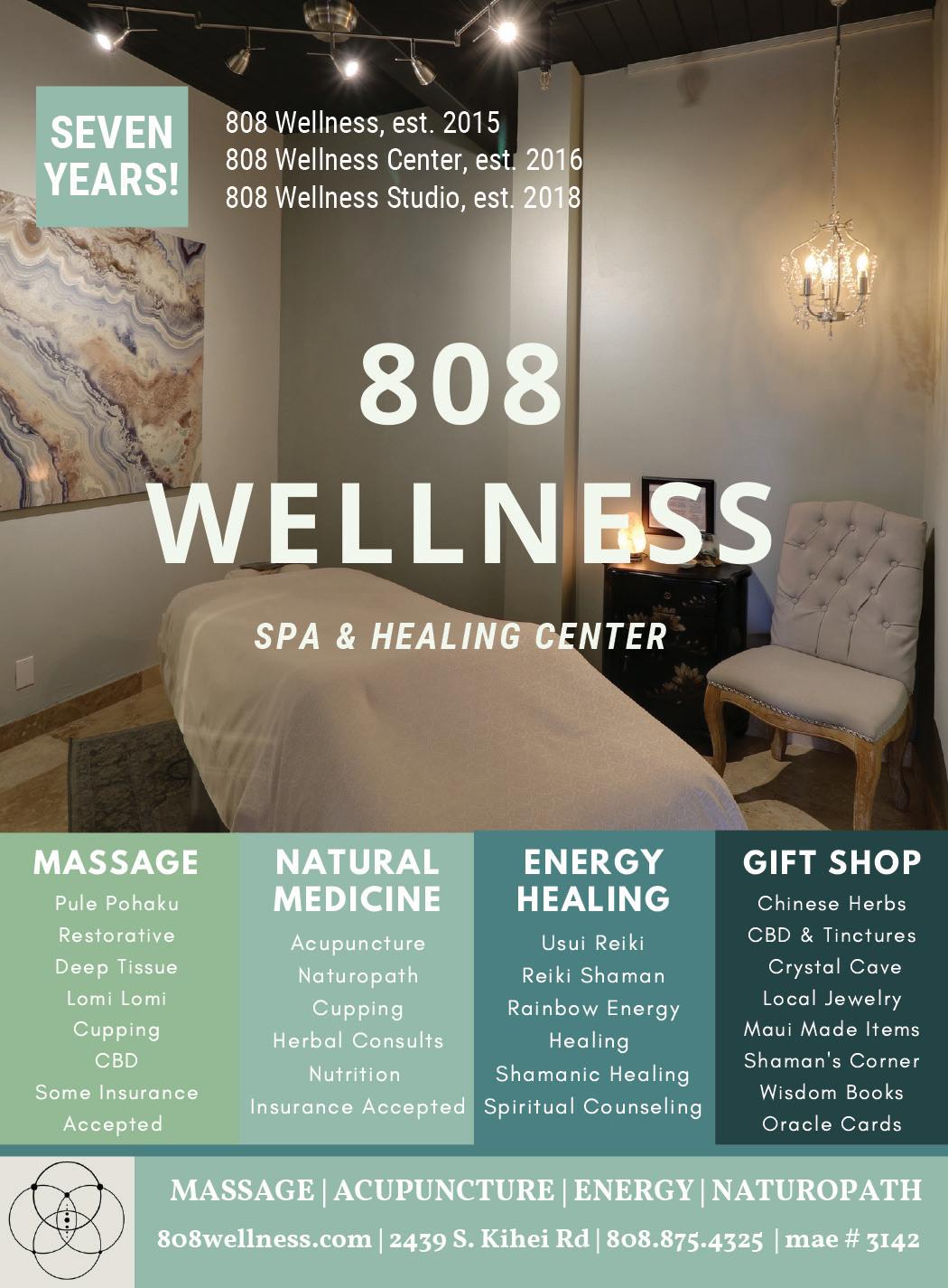 808 WELLNESS, 808wellness.com ~ Spa & Heal ing Center in S. Kihei, MAE #3142. Seeking Licensed Massage Therapists, Healers, Mediums, and Astrolo gers for local spa and resort work. Contact us today to apply: info@808wellness.com