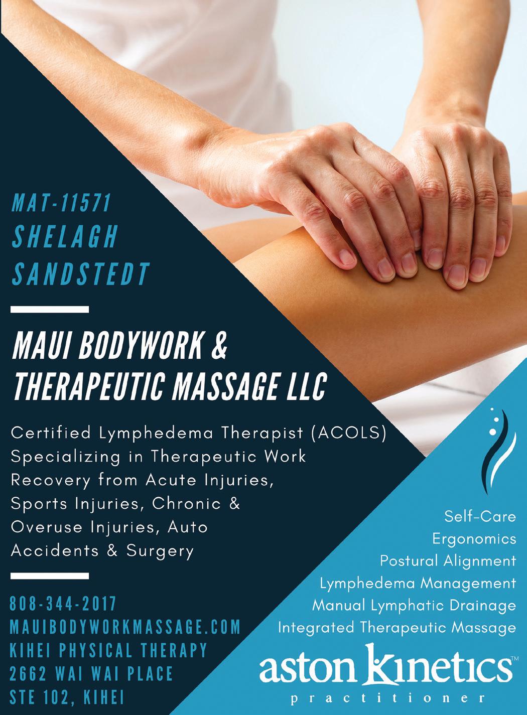 MASSAGE, LYMPH DRAINAGE, REIKI, ZERO BALANCING Helga Fiederer 808-250-6709 helgaonmaui@yahoo.com