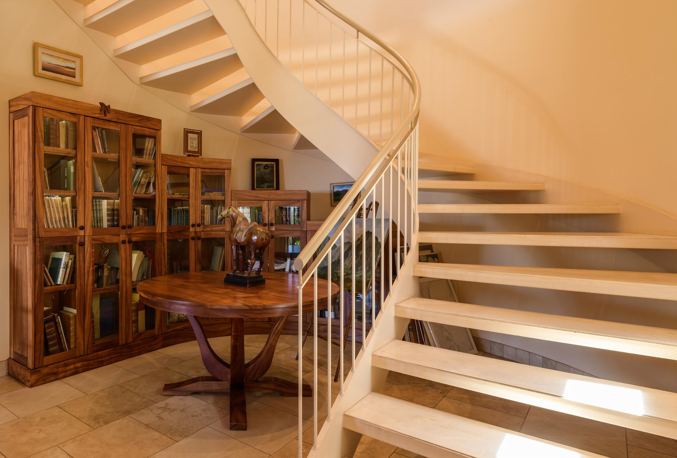 A private lushly landscaped Shangri La at the top of Wailea Highlands, a most coveted gated Wailea community. One enters through custom, polished chrome and hand-cast wave-patterned glass doors framed in richly textured wood; a setting immediately both classic & contemporary. The tranquil entry allows a step into another world enhanced with custom koa wood bookcases, fronted by antique Chinese screens, and a gracious curved steel & limestone staircase. Designed by Hugh Farrington and built by Tae Murphy, this three-level residence affords commanding blue ocean & outer island views from virtually every area of the living, dining, and kitchen areas. This includes the luxurious 1700 s.f. top floor master sanctuary, covered lanai and elegant office with built-in circular koa wood desk. The home is an architectural delight; pomegranate-hued beams graphically frame recessed bird’s eye maple ceiling panels, mirroring the living areas below. Expansive glass walls retract on all three levels facilitating our tropical seamless indoor/outdoor Maui lifestyle. Ubatuba granite counters & a full-height backsplash complement the Anigre custom wood cabinetry & the Gaggeneau stainless appliances. A barrel-vaulted ceiling defines the gallery-like stairway to the ground-level family/media, powder room & two guest suites. Mature Areca palms surround the pool & spa helping to create total privacy. A prolific garden nurtures herbs, banana, papaya, mango, avocado, lemon, lime & orange trees. Truly a place of peace & beauty. World Class shopping, dining, spas, diving, hiking, tennis & golf privileges in the Wailea Resort.