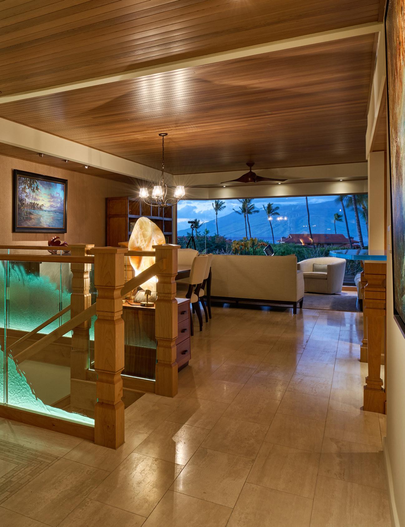 Almost every surface of Wailea Point 901 is meticulously & exquisitely detailed. This 3 Bed, 4 Bath, 2-level, 2,554 s.f. ocean & West Maui Mountain view home features custom designer finishes & masterful architectural details throughout. Everywhere you look, the quality of the materials & attention to detail is exhilarating. Upon entering, the custom cherry wood & illuminated glass staircase to the lower level den, full bath, media center, wet bar, & third sleeping area, is a noticeable architectural gem. The 1.5” thick custom floating glass kitchen island counter emanates an ethereal glow. The gleaming stainless steel SubZero & Wolf appliances are juxtaposed with the dramatic richly-toned fusion quartz counters, & the woven copper & brass backsplash. Everywhere, the elegance of the cherry wood cabinetry detailed with African wenge wood speaks of craftspersonship! The oversized, wrap-around, partially covered, exterior ocean -view lanai affords alfresco dining in a lush garden setting, & a built-in BBQ detailed with counter-to-ceiling matte gold lustre hand-cast glass tiles. All four full bathrooms feature elegant surfaces including back-lit onyx, Esmerelda granite, natural limestone, hand-cast glass tile details, & sandblasted decorative glass enclosures. The custom media center, in the lower level den area, boasts hand-carved monstera leaf wood door panels & cast bronze cabinet pulls, plus a full wet bar with a stainless sink, dishwasher, fridge, & wine cooler. An elegant bunk bed & built-in Murphy bed are rendered in book-matched cherry wood. Wailea Point is proudly positioned upon 28 lushly landscaped, premier, oceanfront acres in the world-class Wailea resort area, bordered by two of Maui’s most iconic beaches, as well as the Four Seasons & Fairmont Kea Lani resorts. It offers guard-gated & 24-hour roving security, two pool/spa pavilions for hosting Wailea Point community gatherings & the owners’ private use, a fully-equipped gym, spas/jacuzzis, BBQ areas, a tennis court, & pickleball courts. MLS # 401328