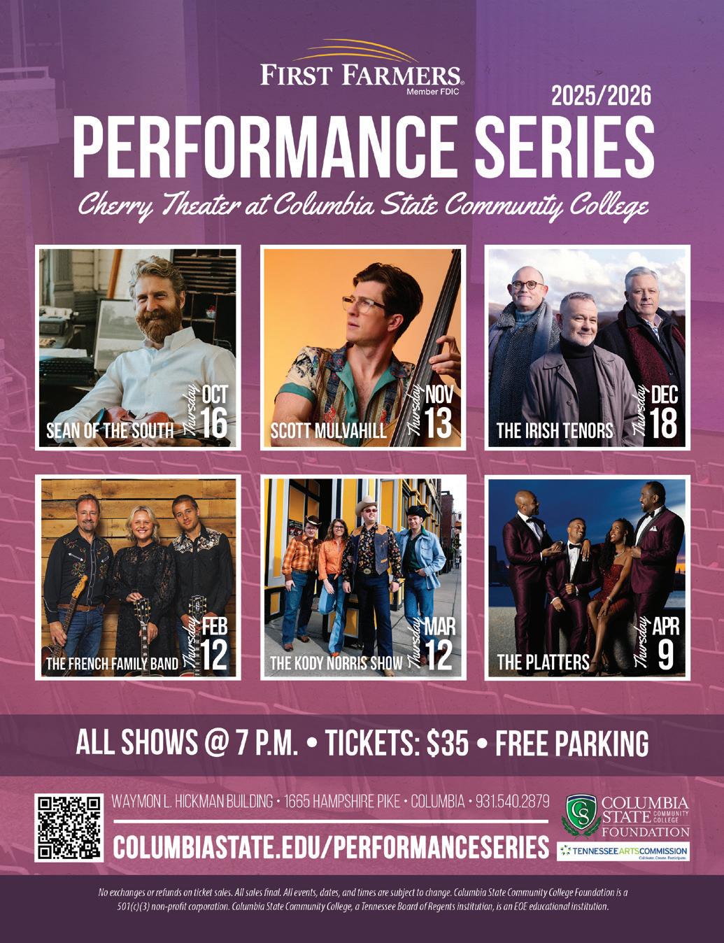 Ina town rich with history, charm, and Southern spirit, one cultural treasure has quietly enriched community life Columbia State Community College’s Performance Series. For more than two decades, Tennessee’s first community college has curated remarkable performances, offering audiences the opportunity to experience exceptional music from familiar favorites to rising stars.