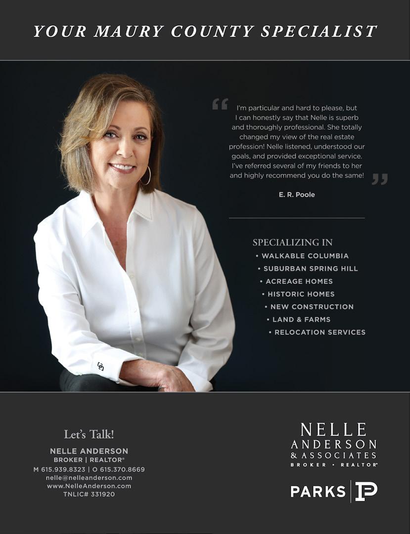Maury County Living (ISSN 2770-7474) is a bimonthly magazine published by Music City Publications, Inc., and distributed via the United States Postal Service to some of Maury County’s most affluent homes including a portion of Spring Hill located in Williamson County. Under the Fair Housing Act of 1968 and the Tennessee Human Rights Act, it is unlawful to discriminate in housing transactions based on race, color, national origin, religion, sex, disability, or family status. The entire contents of Maury County Living are copyrighted and may not be reproduced without express written consent. Articles and content of Maury County Living do not necessarily reflect the opinions of Music City Publications, Inc. nor does Music City Publications, Inc., assume responsibility for writers’ opinions and content or the products and services advertised herein.