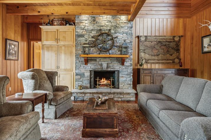 The surrounding 39 wooded acres are ideal for hiking, hunting, and exploring, especially in the fall when the landscape turns golden. When winter sets in, there’s no better spot for a fire pit, s’mores, and football than on the waterfront lawn listening to the water lapping across the rocks.